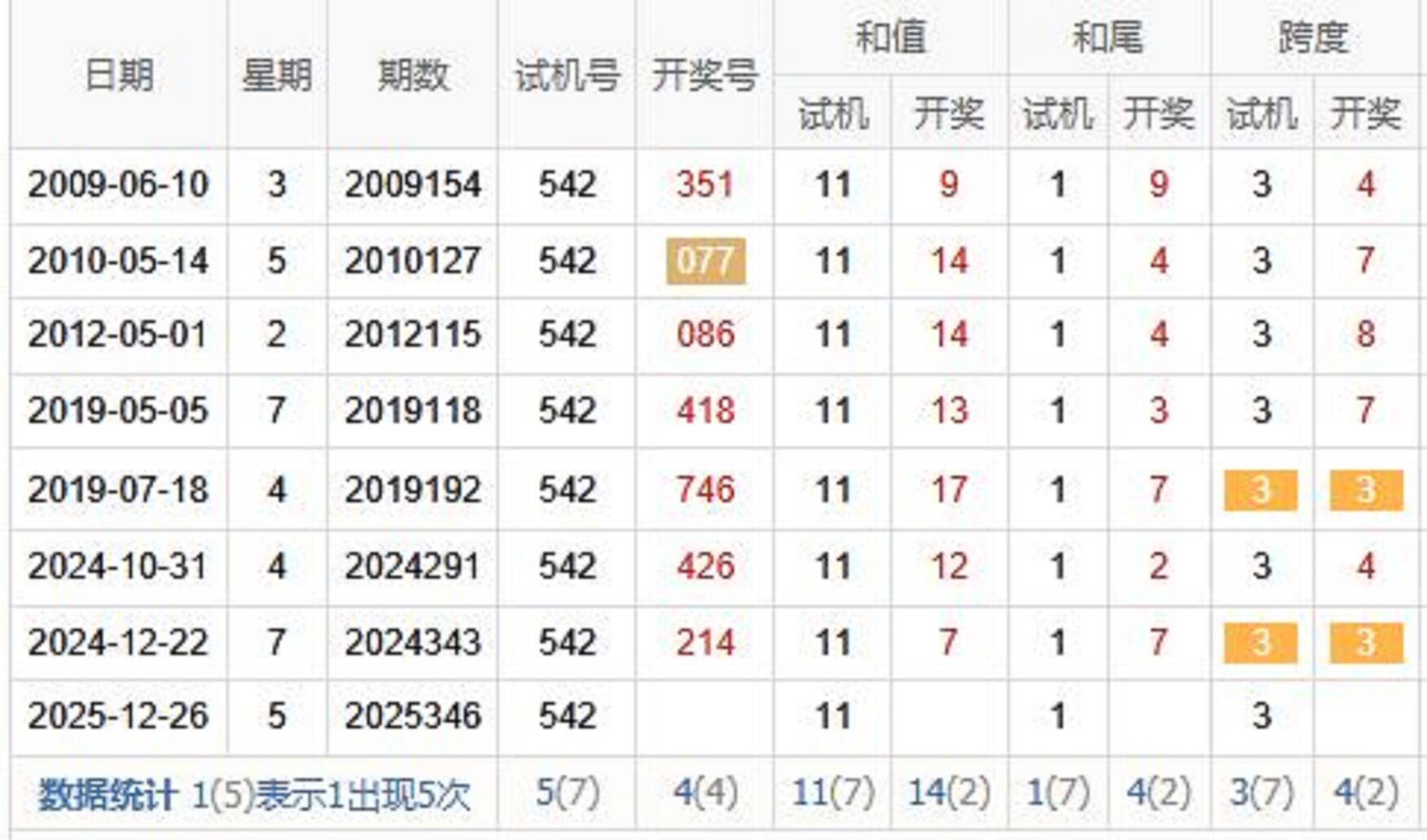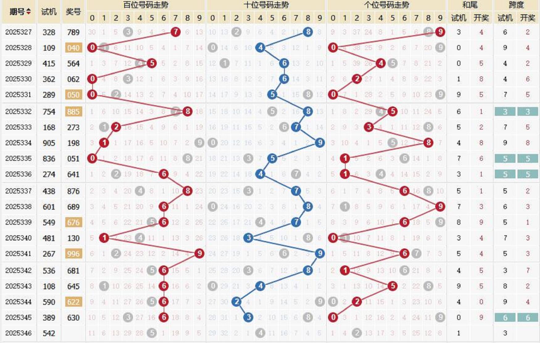 期数 | 试机号 | 关注码 | 金码 | 对应码 | 开奖号 | 出号 |