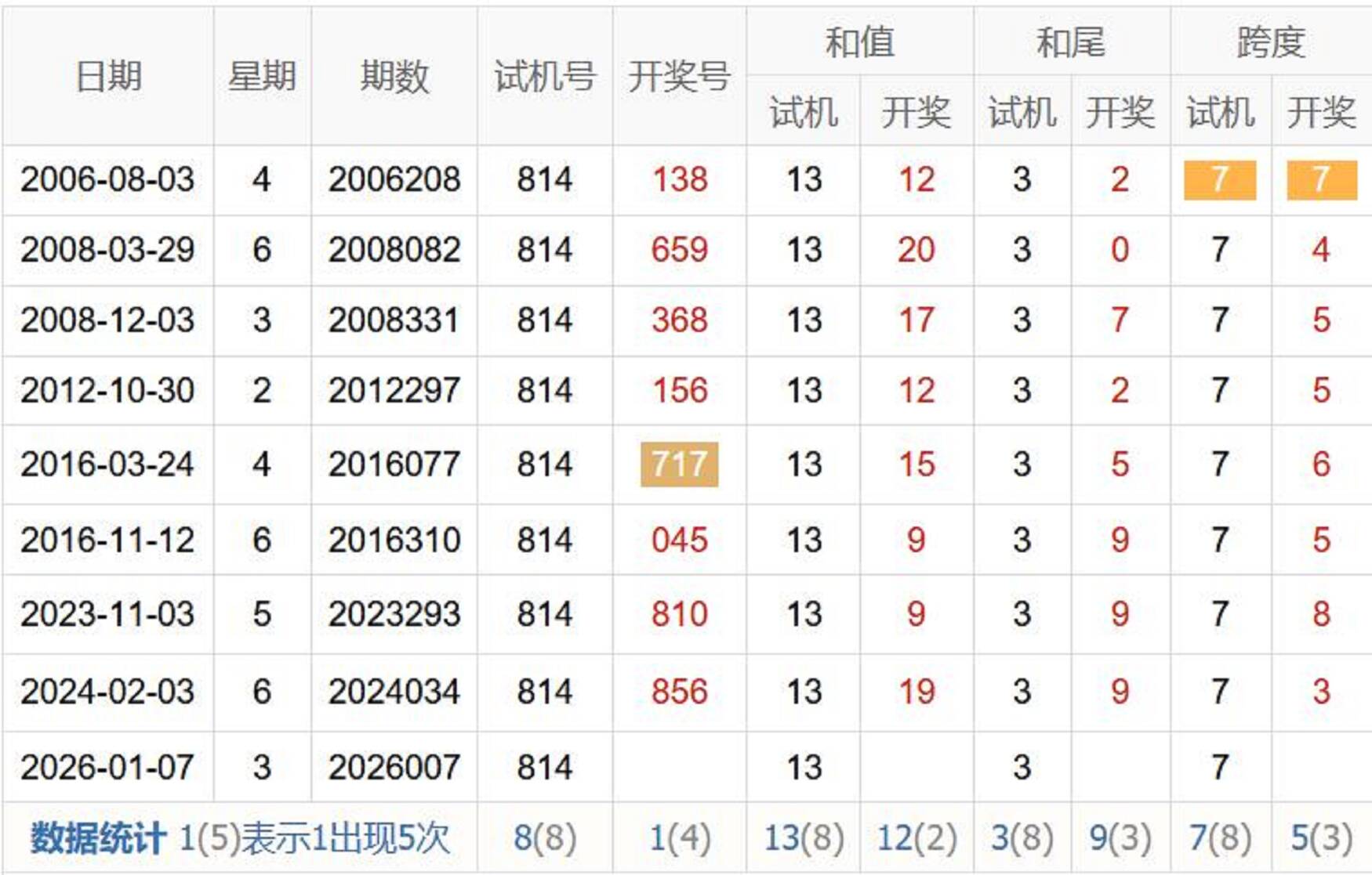 历史出现情况统计