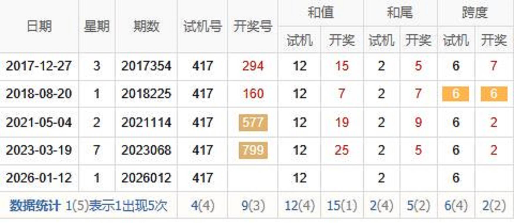 历史出现情况统计