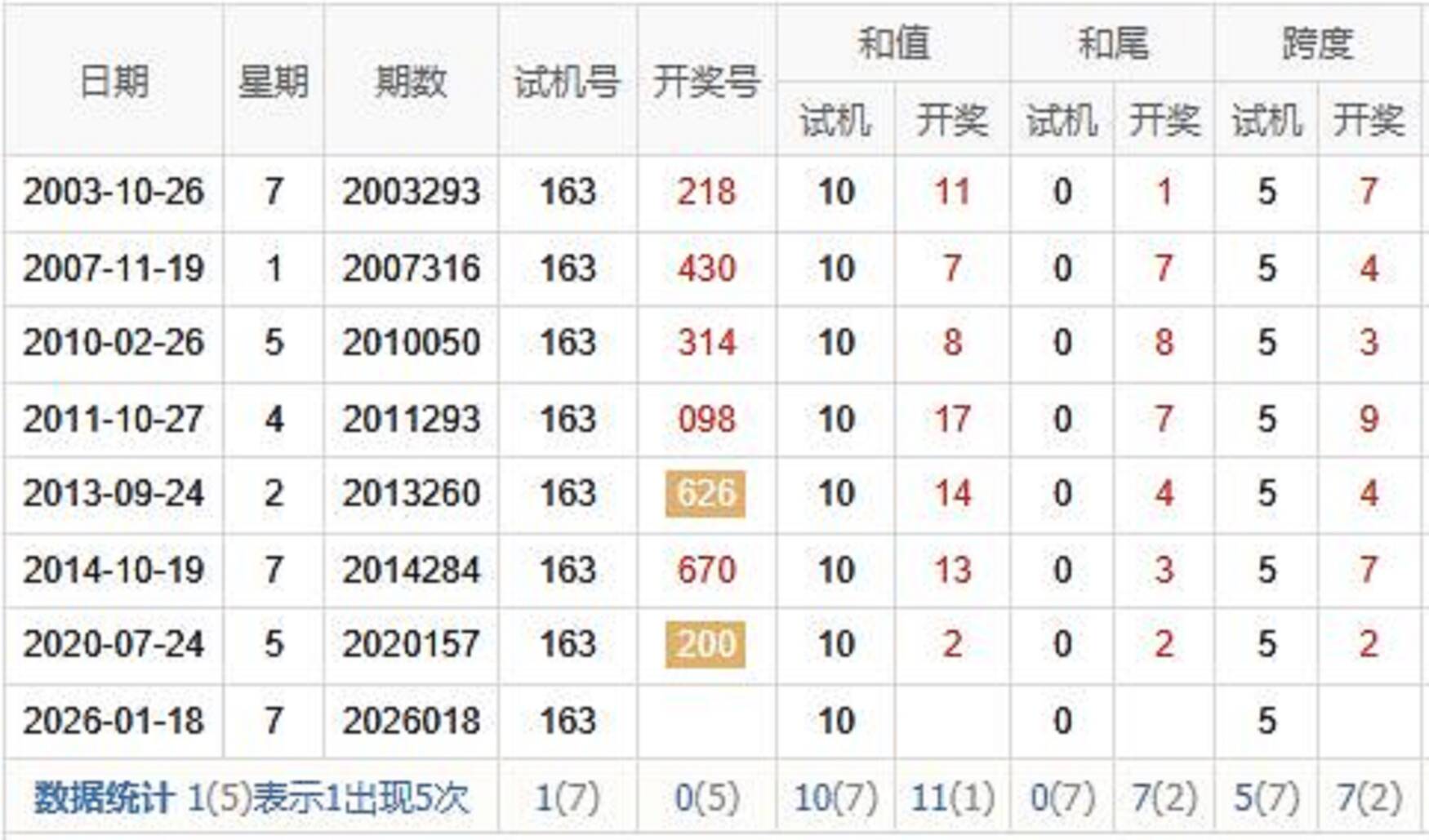 历史出现情况统计