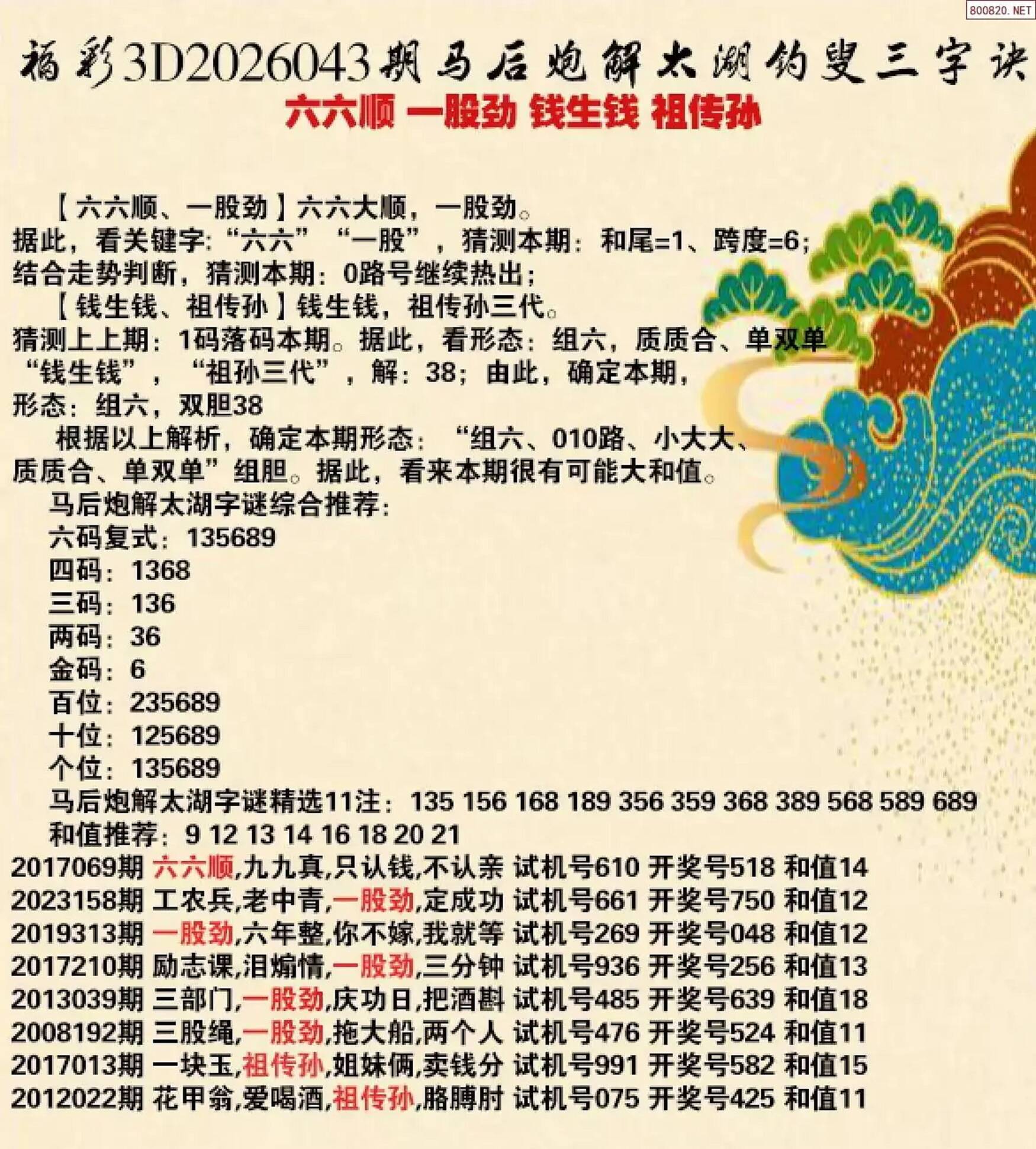 金胆8,18组合