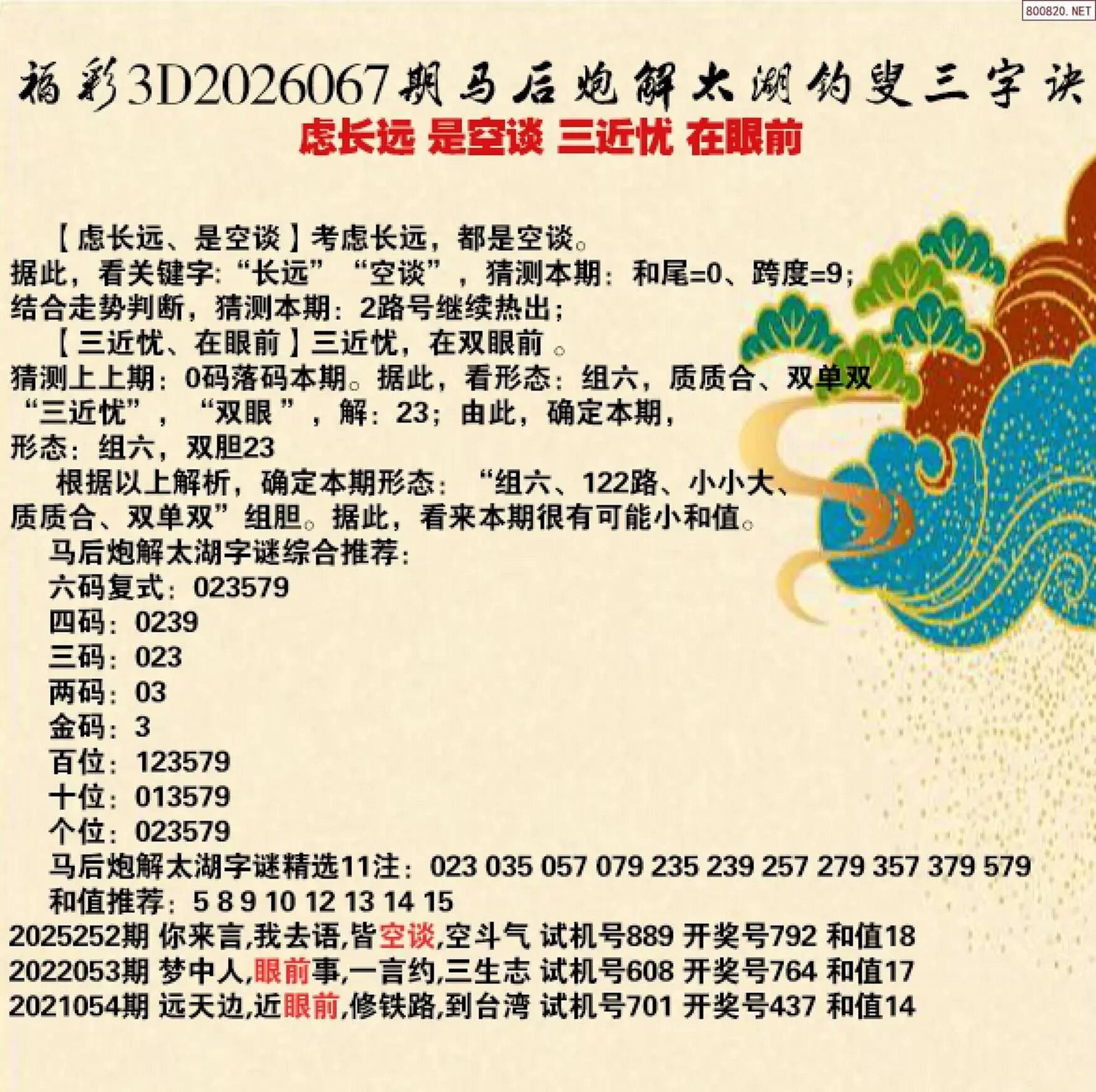 金胆9,9拖036758,组六,单596,盘