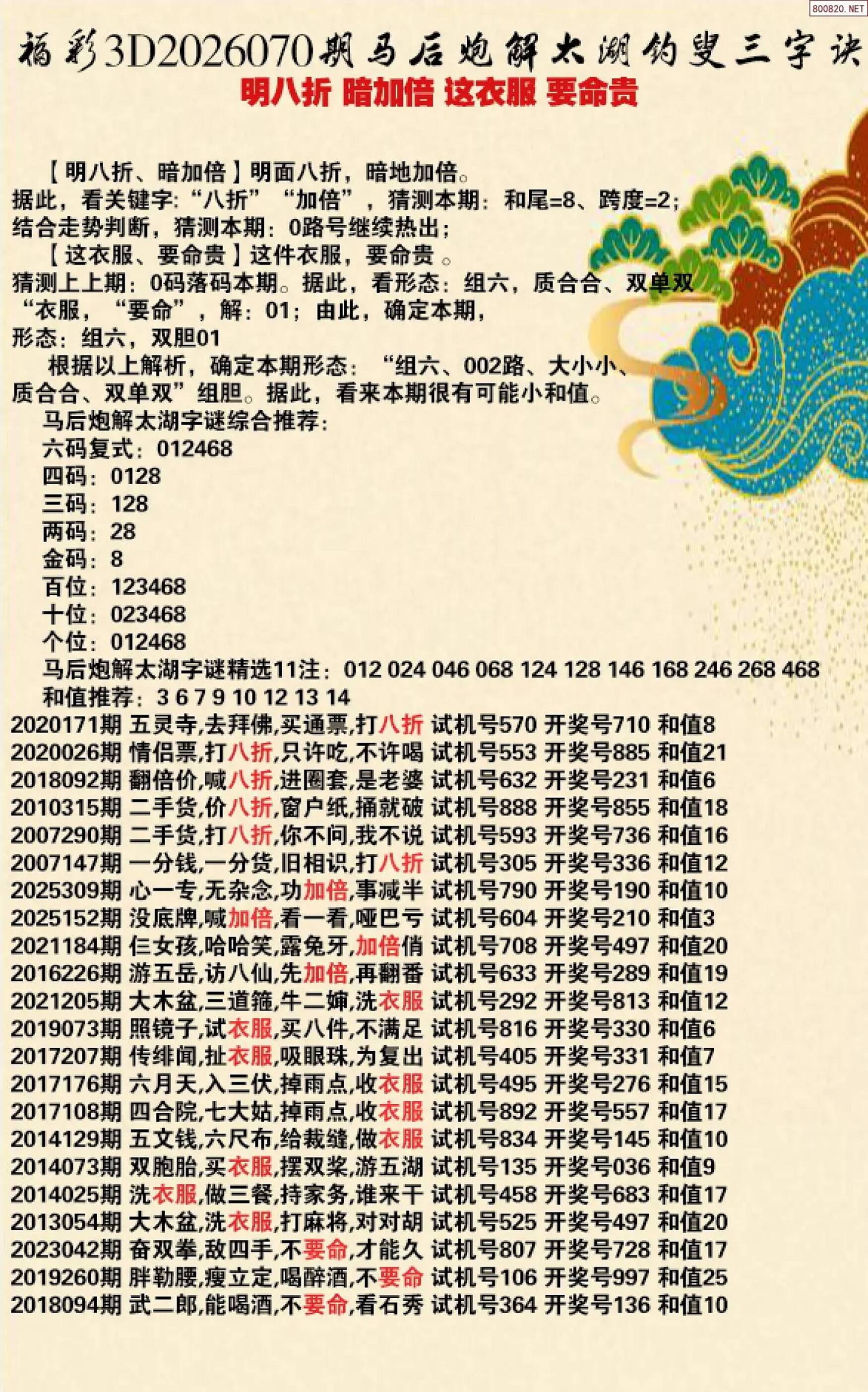 3d,金胆8,绝杀7