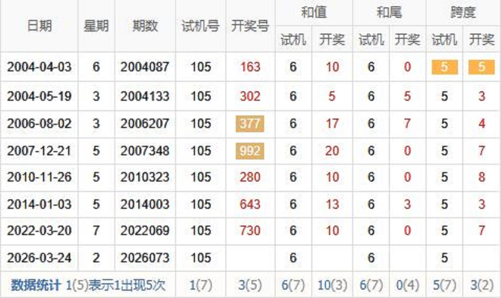 历史出现情况统计