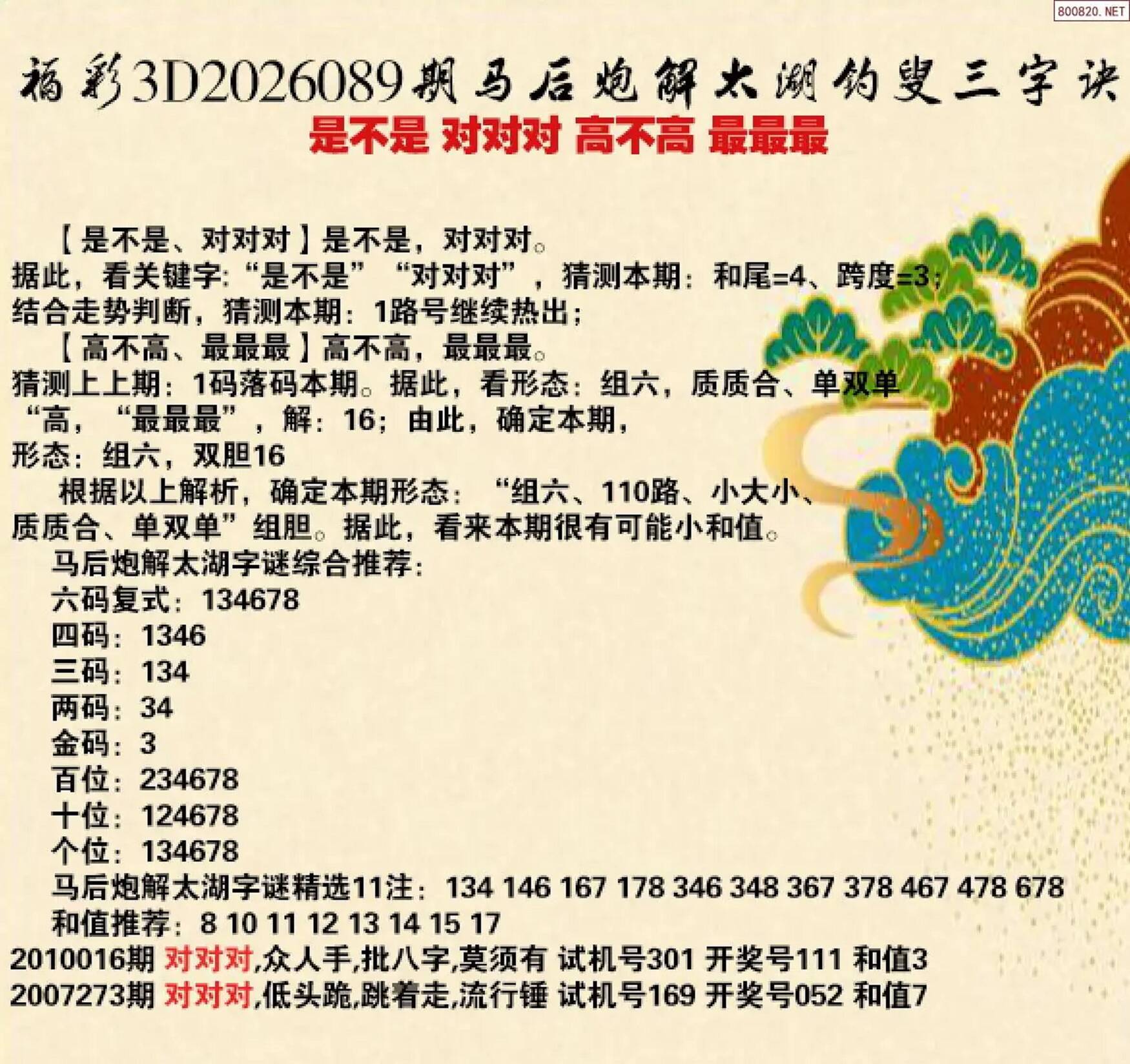 金胆8,百位,8拖04691组六组三